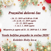 Kolektiv podjetja Hoby les vam želi vesele božične praznike in srečno 2020! Hkrati objavljamo delovni čas v teh prazničnih dneh.