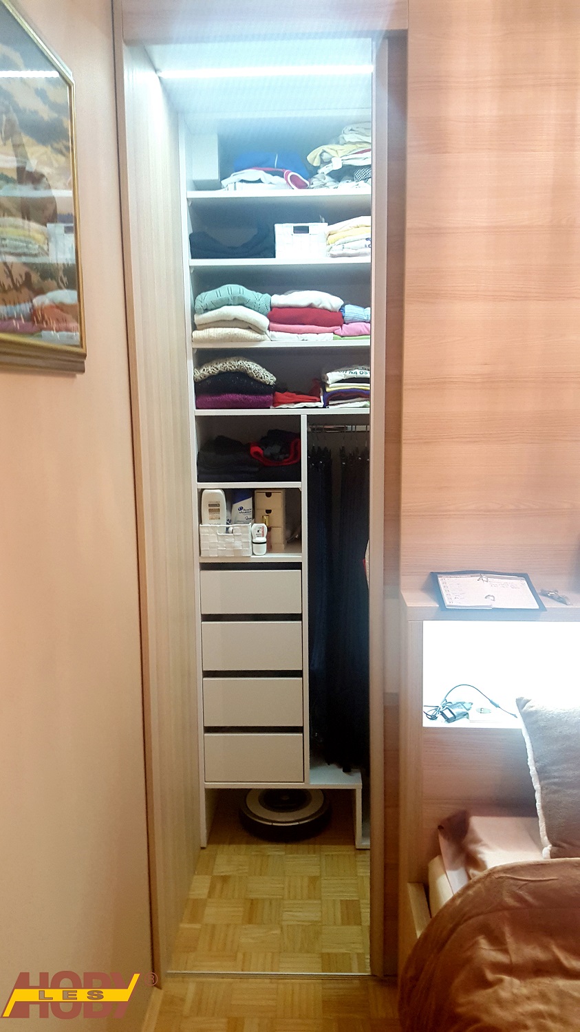 Že kar nekaj let na sejmih, ki se jih udeležujemo, ponosno prestavljamo zanimivo rešitev spalnice. Vgradna omara skrita za posteljo je še posebej vzbudila zanimanje pri ljudeh, ki imajo prostorsko stisko ter si želijo popolnoma izkoristiti prostor. Spet druge je pritegnila nenavadna oblika, saj je zaradi postavitve, sama omara skrita ter prostor vedno »pospravljen«. A vendar se je marsikdo spraševal, kako bi ta postavitev izgledala pri njih doma, v njihovem stanovanju ali na splošno v resničnosti. Ali je ta rešitev sploh mogoča? Ali tako dobro izgleda samo eksponat?